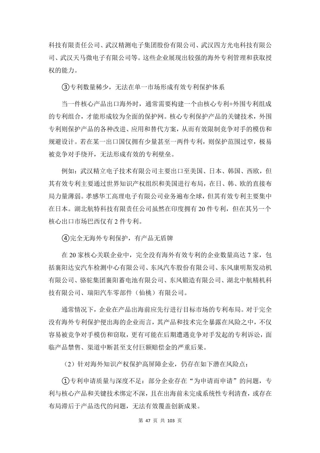 湖北省汽车及零部件产业重点出口企业海外知识产权风险分析与应对策略蓝皮书