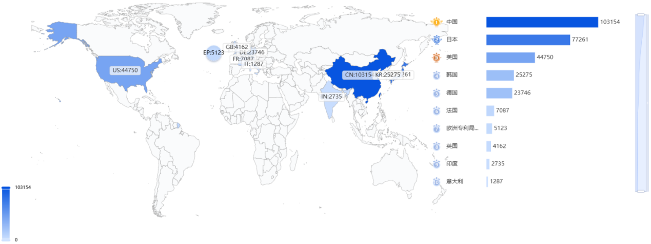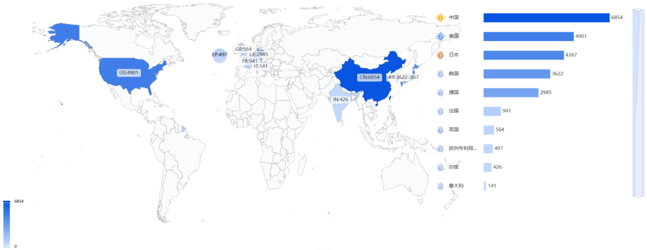 (4)专利所属国家或地区:本报告中专利所属国家或地区是以专利申请的首次申请优先权国别来确定的,没有优先权的专利申请已该项申请的最早申请国别确定。
