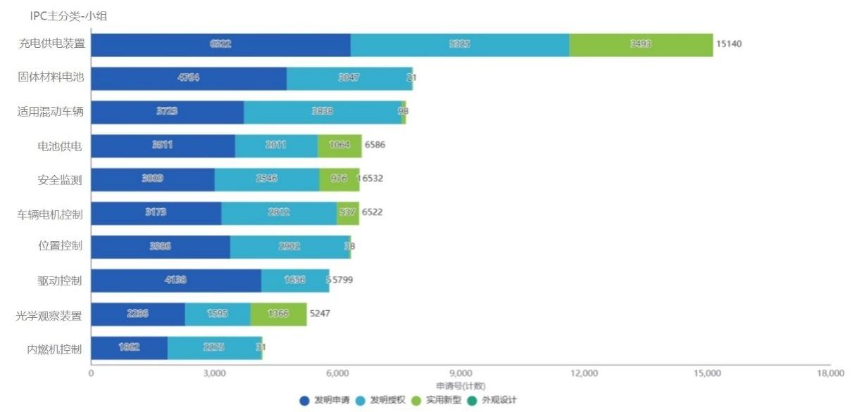 2、新能源汽车产业链的各个环节均表现出强劲的技术创新活力,新能源汽车产业链上、中、下游相关技术均处于迅速发展期,专利数量近年来申请量增加比较迅速。整理来看,新能源汽车产业链上、中、下游各技术分支的发展进度并非完全一致,但总体而言就该趋势来看,上游和下游技术仍属于国内当前的研究热点,而由于国内汽车市场正处于向新能源智能网联汽车转型升级的重要阶段,中游技术仍具有一定研发价值和市场空间。