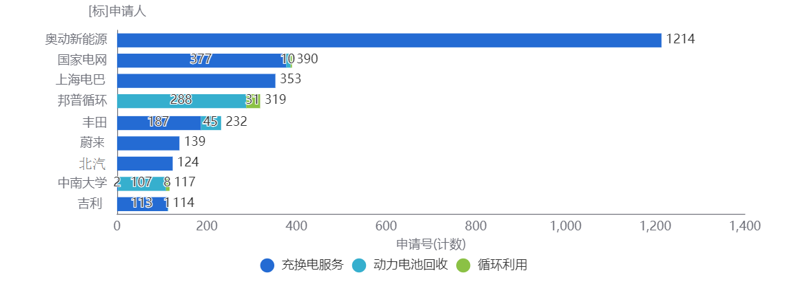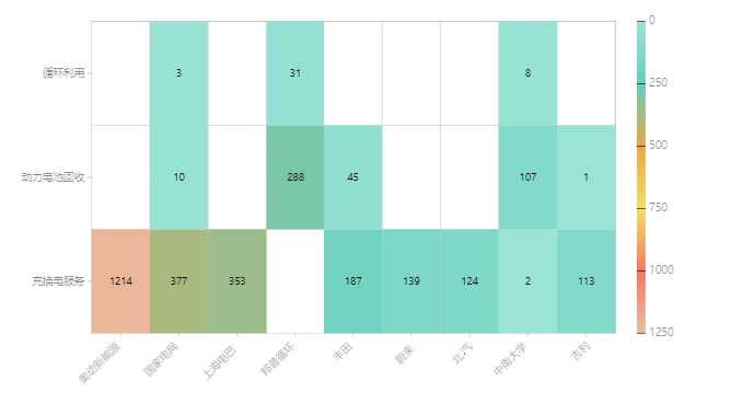 动力电池回收  | 651  | 44  | 761  | 470  | 131  | 280  |