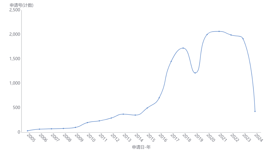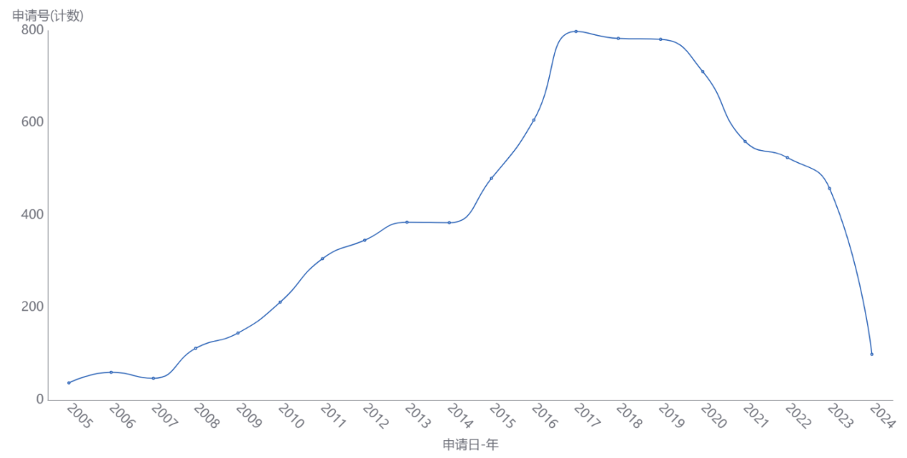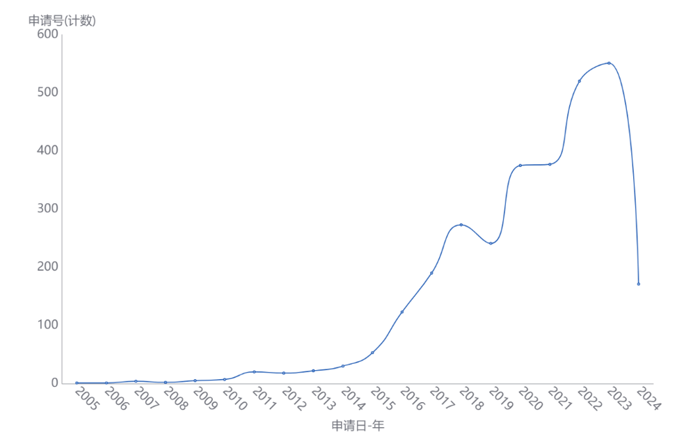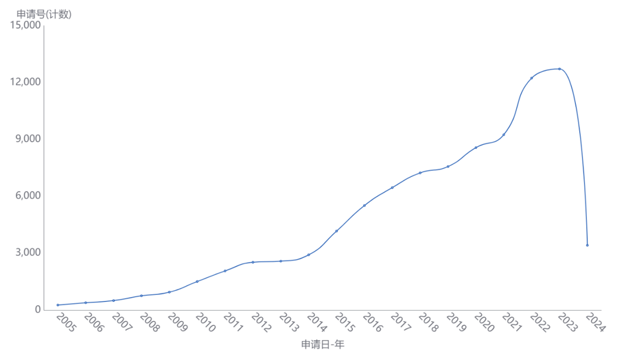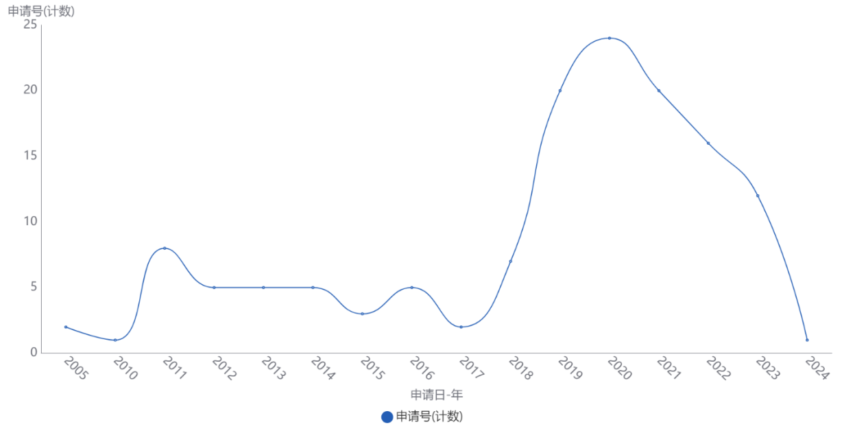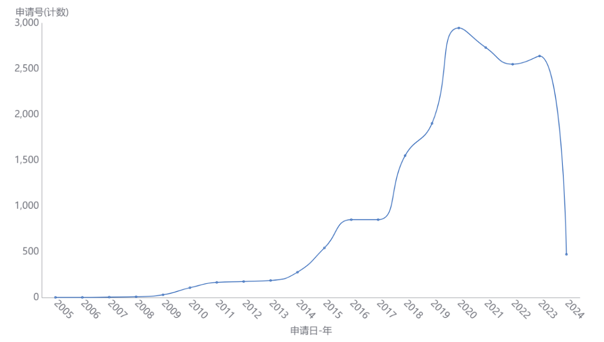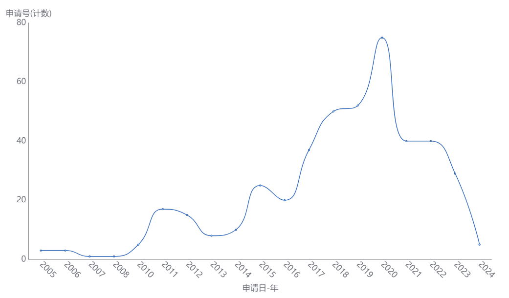 (3)近两年专利文献数据不完整导致申请量下降的原因:在本次专利分析所采集是数据中,由于下列原因导致2010年后提出的专利申请的统计数量比实际的申请量要少:PCT专利申请可能自申请日起30个月甚至更长时间之后才能进入国家阶段,从而导致与之相对应的国家公布时间更晚;中国发明专利申请通常自申请日起18个月(要求提前公布的申请除外)才能被公布。