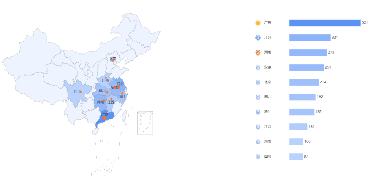 1、湖北省在新能源汽车产业领域的专利申请量为8291件,占全国总申请量的3.1%;授权量为6077件,约占全国总授权量的3.1%;专利有效量为4144件,约占全国总有效量的3.1%。湖北省在全国的专利申请量、授权量和有效量占比均约为3.1%,显示出湖北省虽然在新能源汽车领域的积极布局,但并非全国领先省份。
