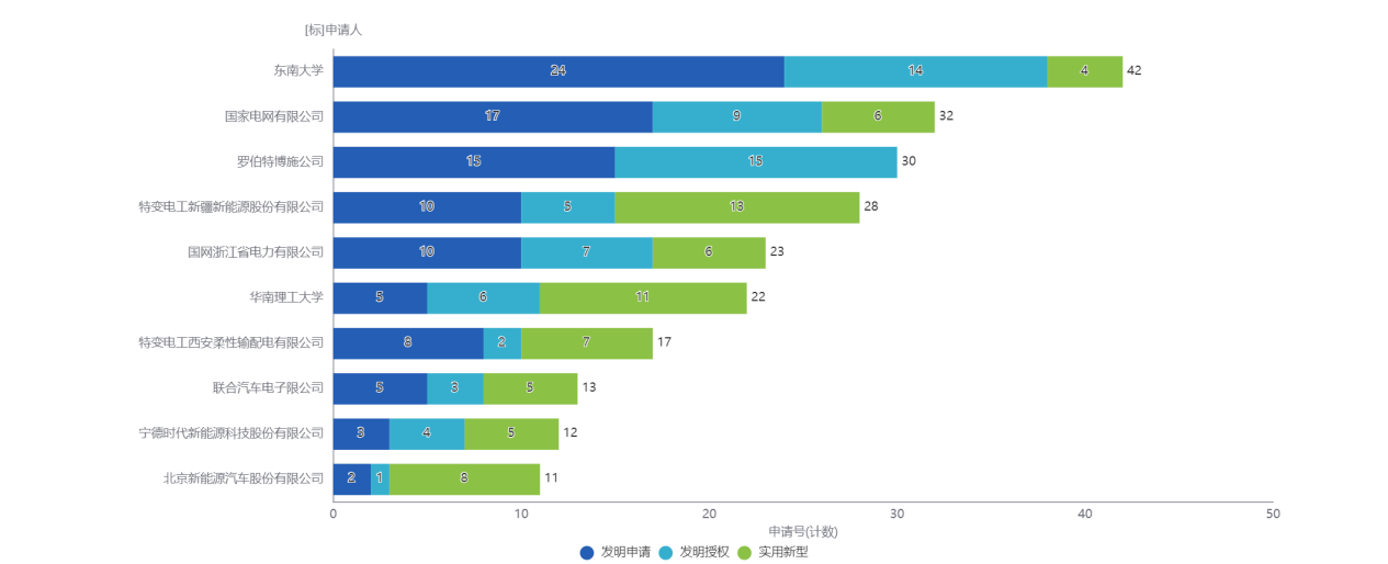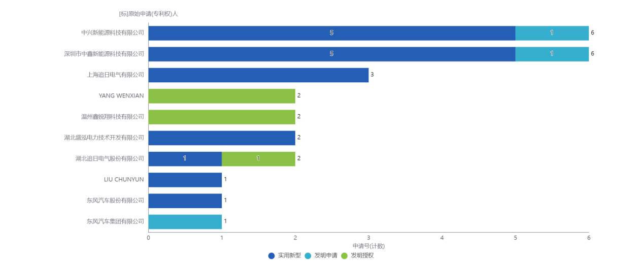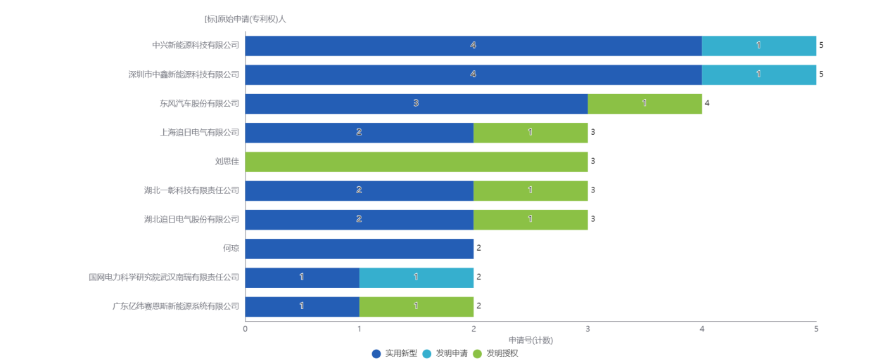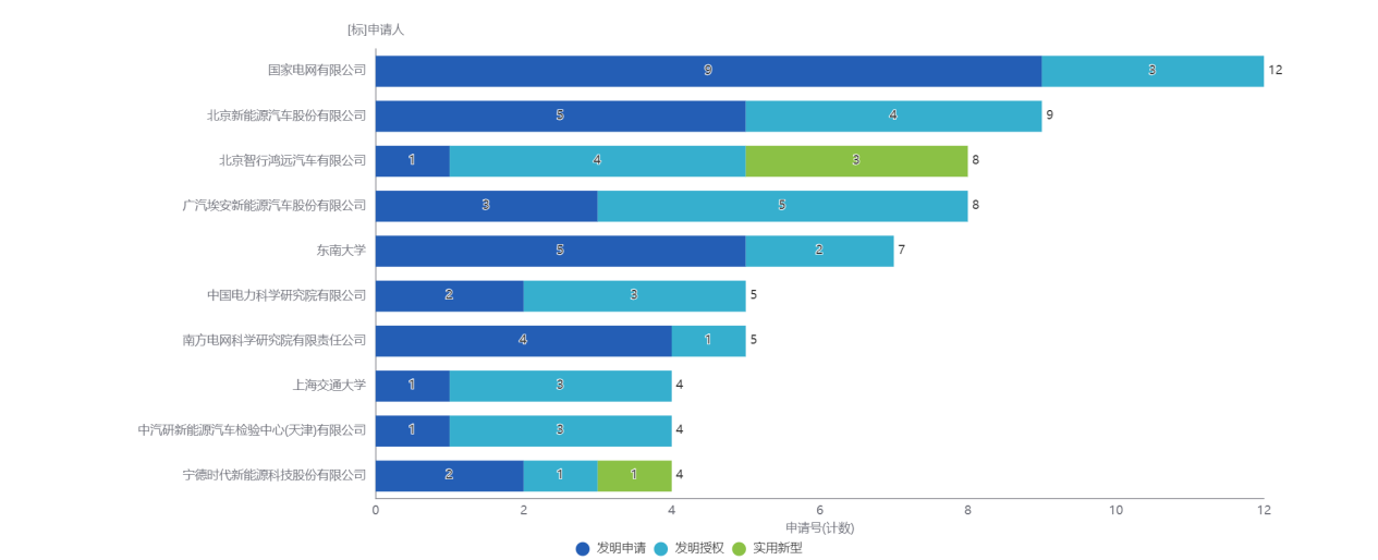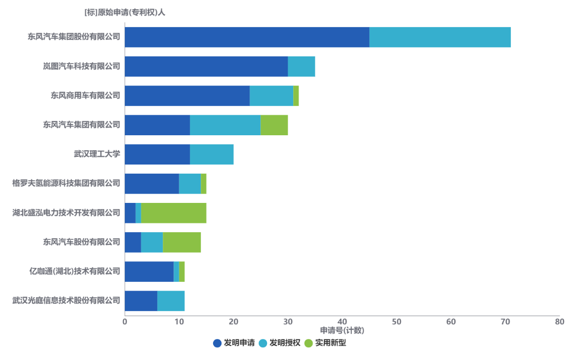 4、在新能源汽车产业链上游相关技术中,湖北省内在该技术领域申请量较多的企业包括东风汽车集团、楚能新能源股份有限公司、格罗夫氢能源科技集团有限公司、湖北盛泓电力技术开发有限公司、亿咖通(湖北)技术有限公司等,高校包括华中科技大学、武汉理工大学、三峡大学等,与企业研究方向形成互补;在新能源汽车产业链中游相关技术中,省内在该技术领域申请量较多的申请人为东风汽车集团、格罗夫氢能源科技集团有限公司、武汉理工大学等,与全国研究热点一致;新能源汽车产业链下游相关技术中,省内在该技术领域申请量较多的申请人为湖北盛泓电力技术开发有限公司、武汉蔚能电池资产有限公司、格林美股份有限公司、东风汽车集团等,主要研发方向集中在充电桩和废旧电池回收利用等。