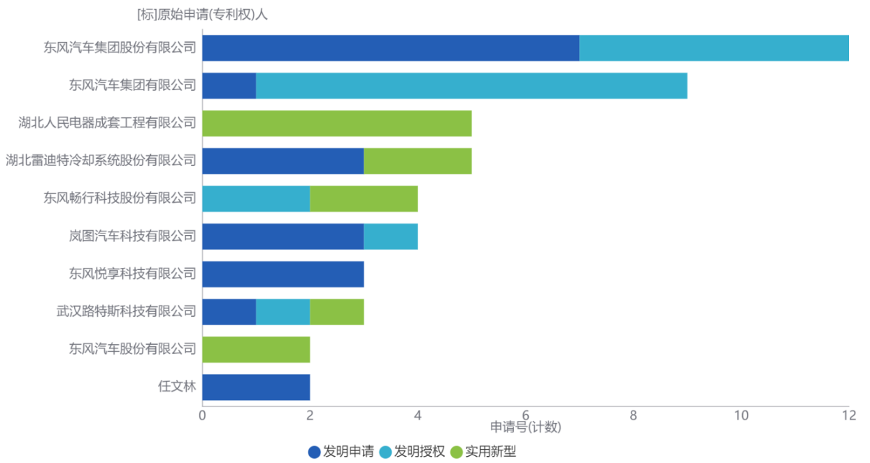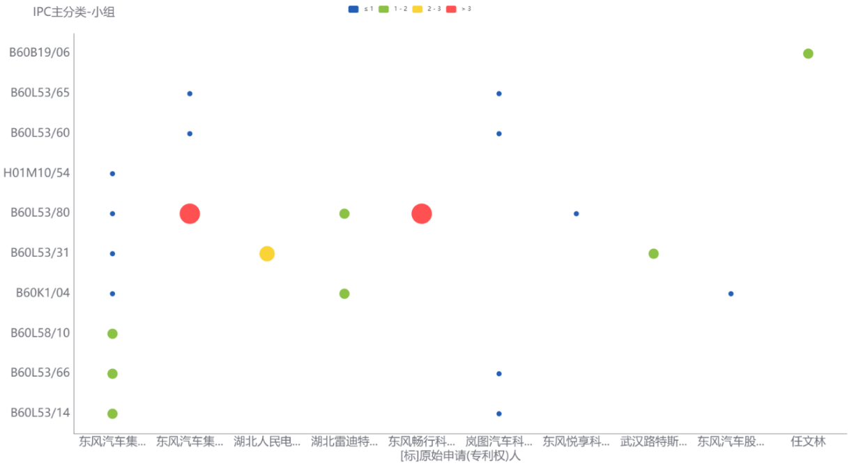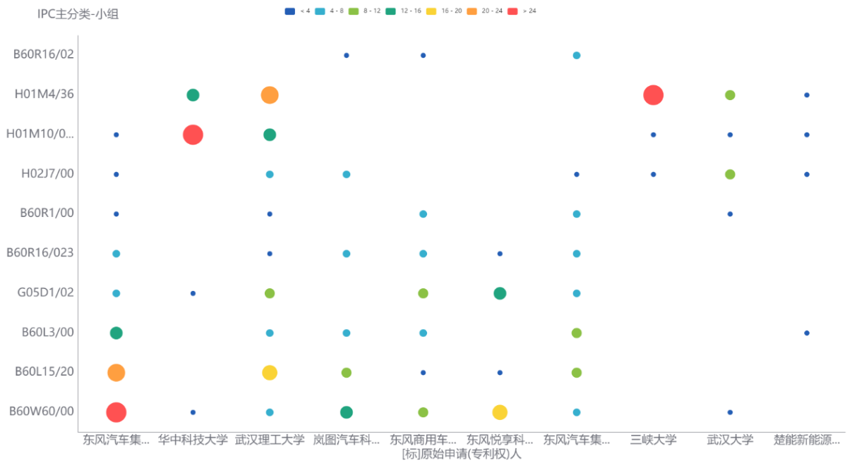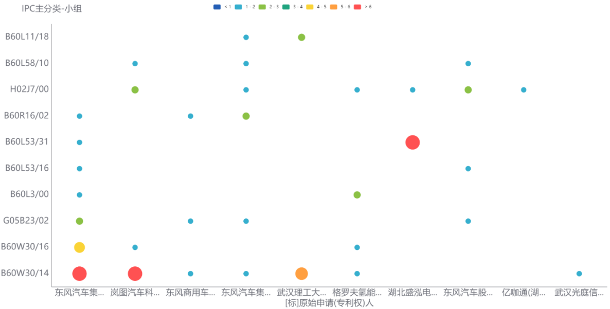 6、武汉经开区新能源汽车产业链上、中、下游相关技术的申请均主要来源于东风汽车集团,专利申请技术集中度较高。