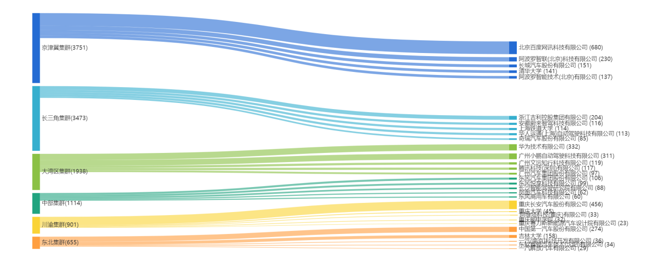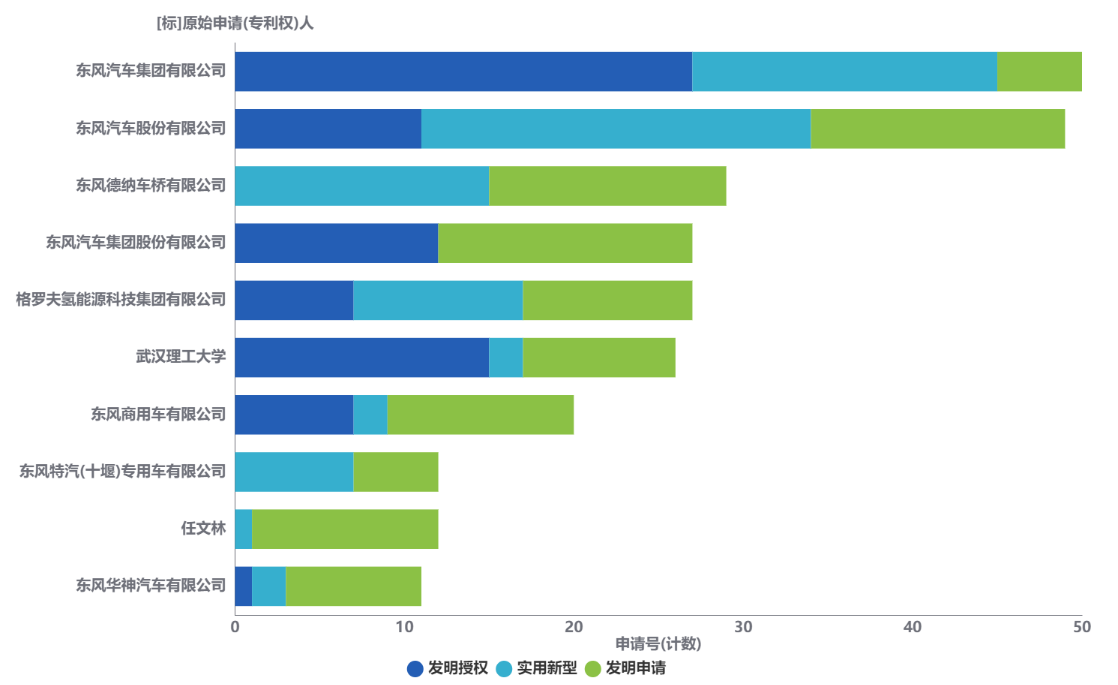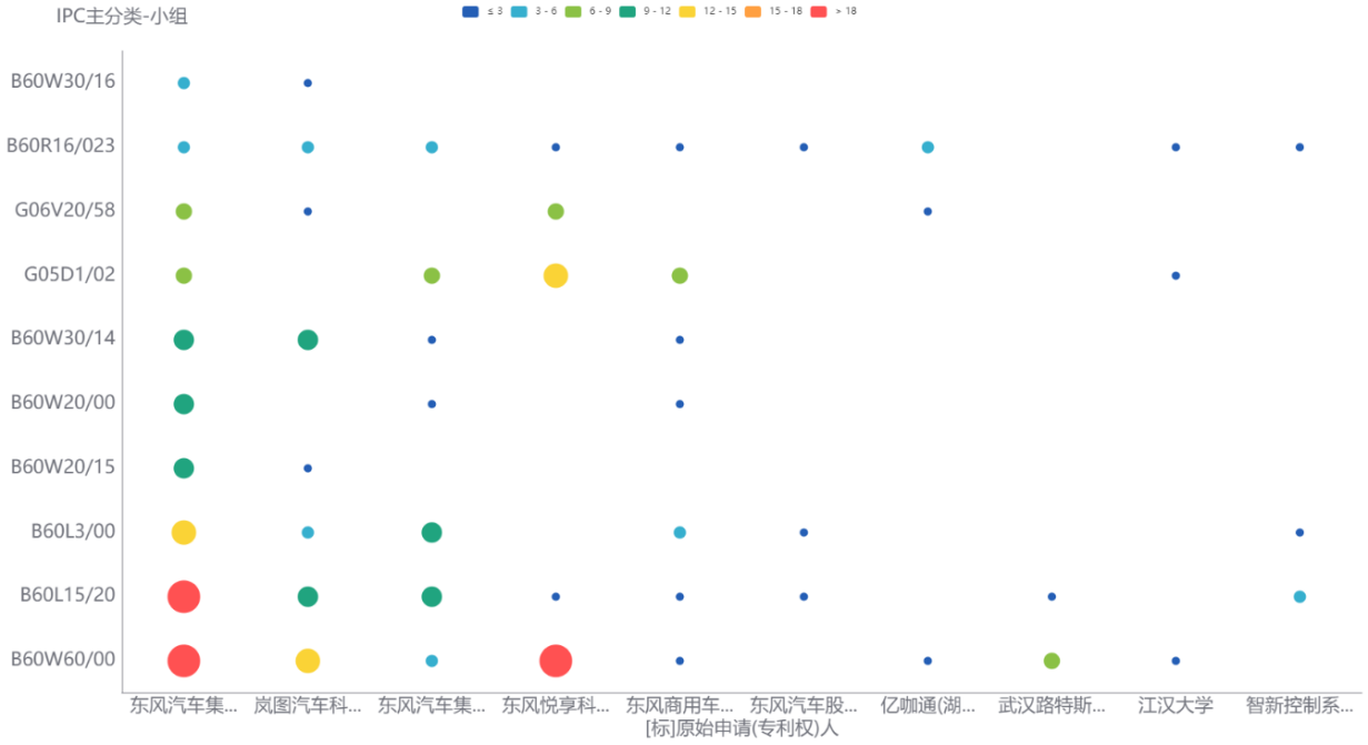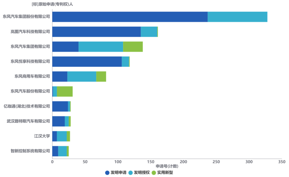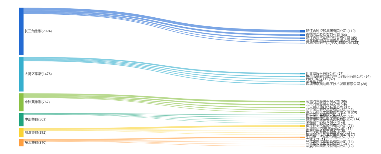 6、武汉经开区新能源汽车产业链上、中、下游相关技术的申请均主要来源于东风汽车集团,专利申请技术集中度较高。