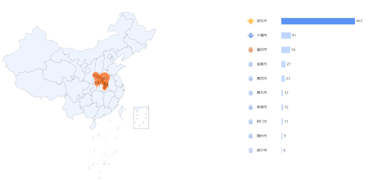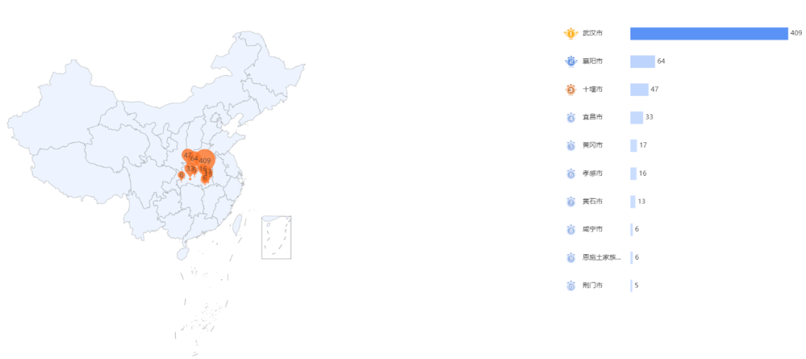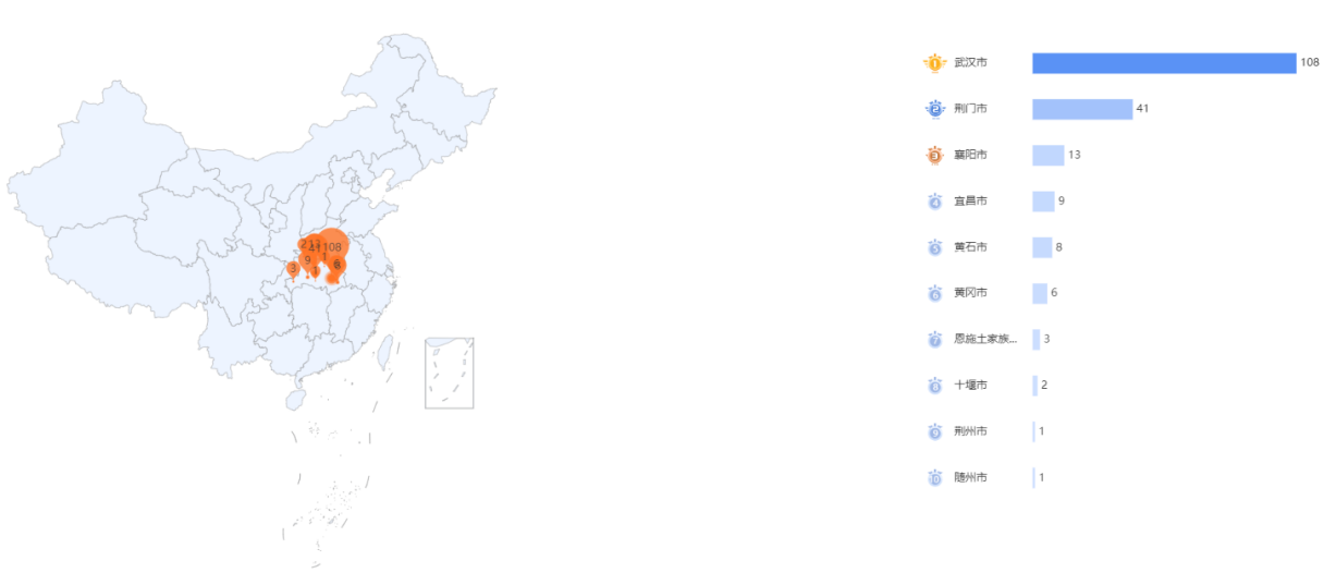 3、新能源汽车产业链上、中、下游相关技术的申请均主要来源于武汉市,其次是襄阳市和十堰市。武汉市作为湖北省的省会城市,拥有强大的经济实力和科研资源,自然成为新能源汽车专利申请的主要集中地。