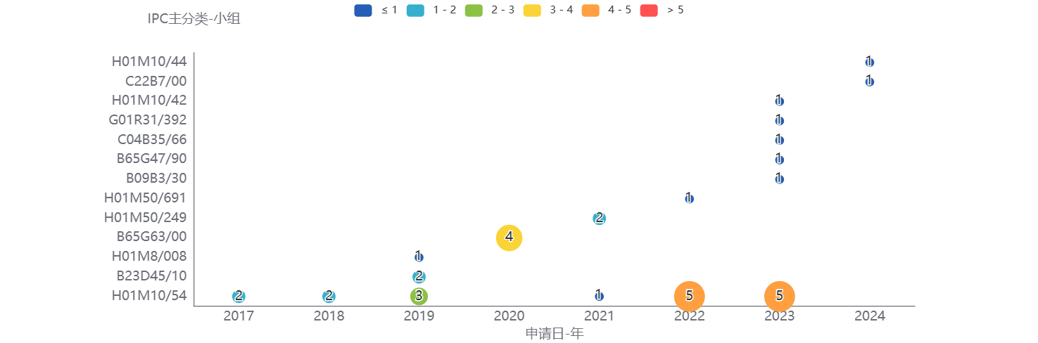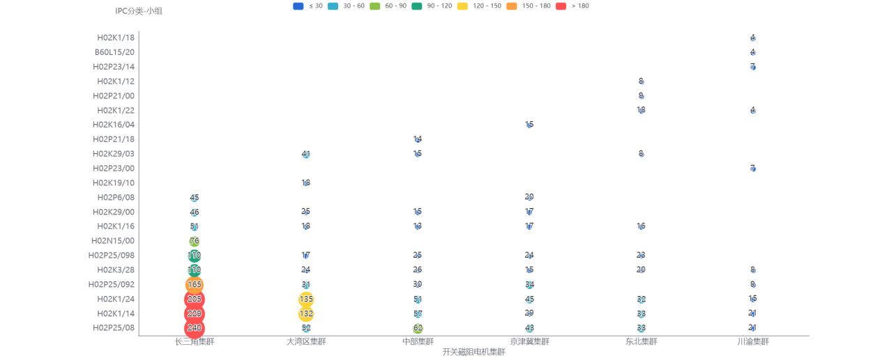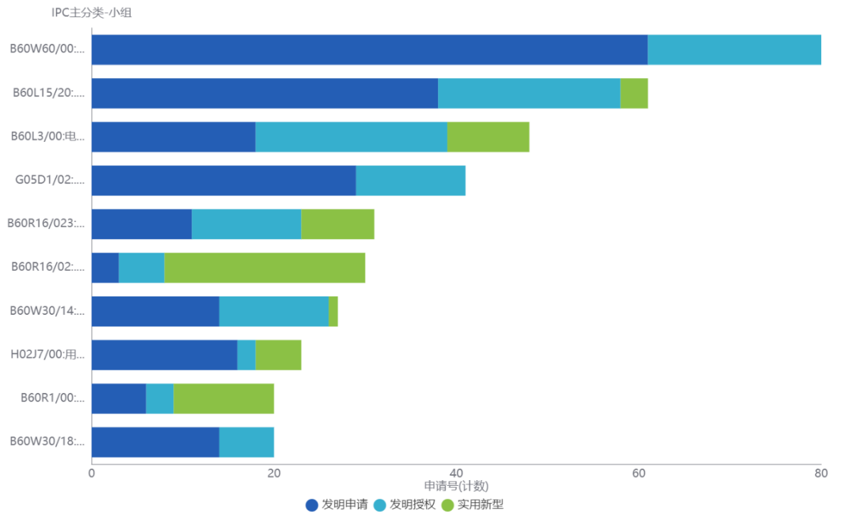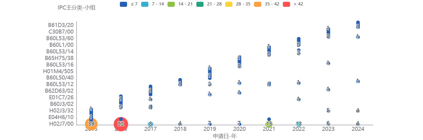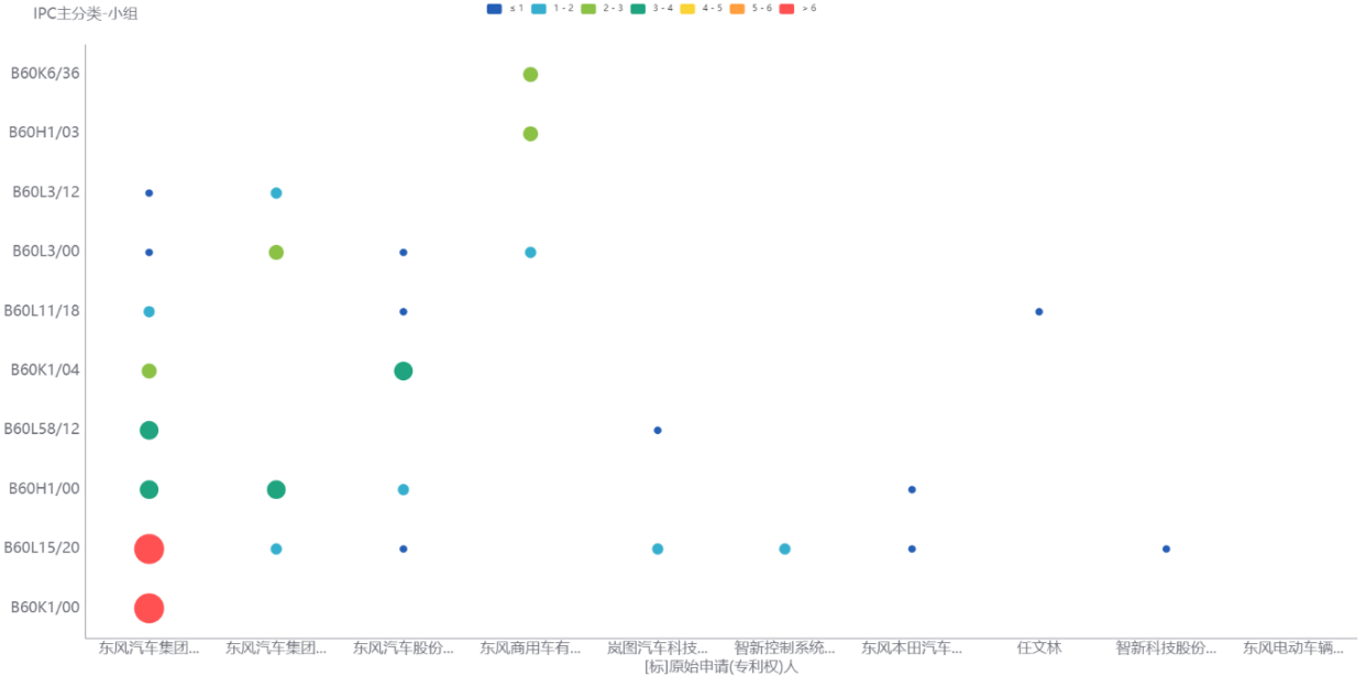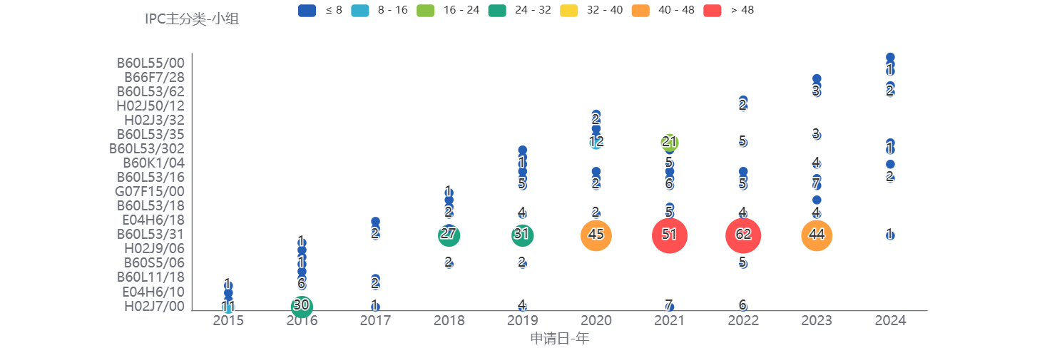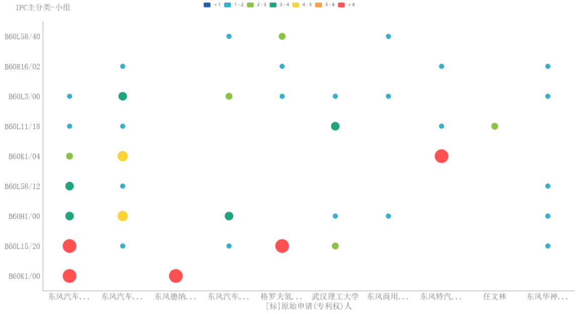 3、电控操作系统:在关键技术节点如H04L29/08(传输控制规程)和B60L15/20(用于控制车辆或其驱动电动机)等领域,中部集群的专利布局不足。