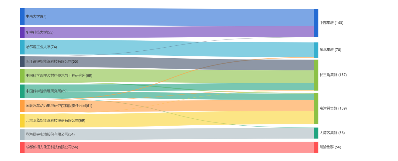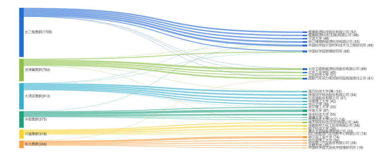 中部集群  | 东北集群  | 长三角集群  | 大湾区集群  | 川渝集群  | 京津冀集群  | |