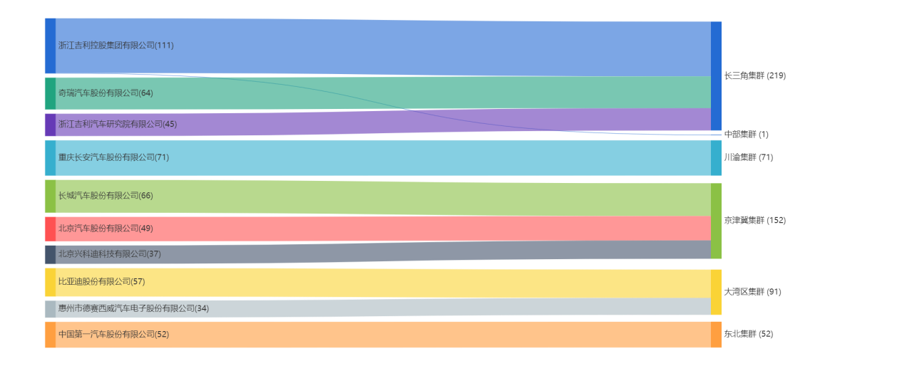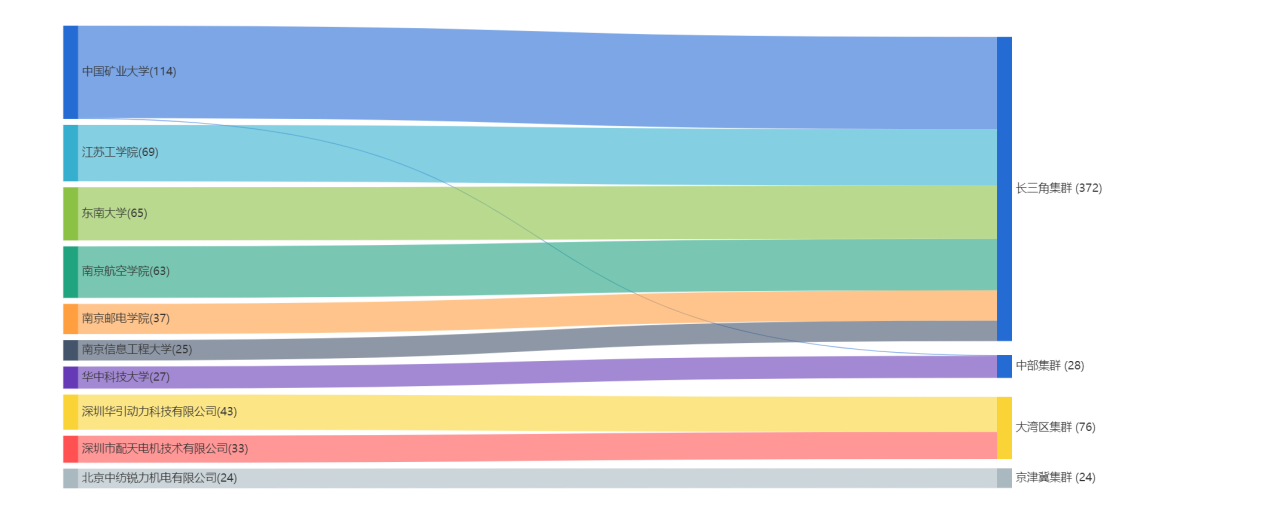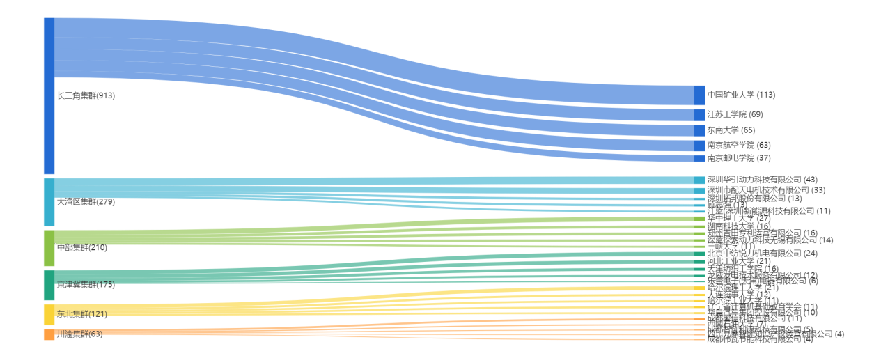鉴于国内新能源汽车产业链发展状况和湖北省目前现有情况,建议政策制定过程中注意区域协同规划,可以武汉经开区为核心,依托东风汽车集团等技术集中度高的龙头企业,辐射襄阳、十堰等地形成产业集群,引导形成“武汉-襄十随”专利协同产出模式,并在实施的过程中注意加强上游系统配套设备与原材料供应、中游配套设备生产研究及设计的联系,抢占国内、国际市场份额。