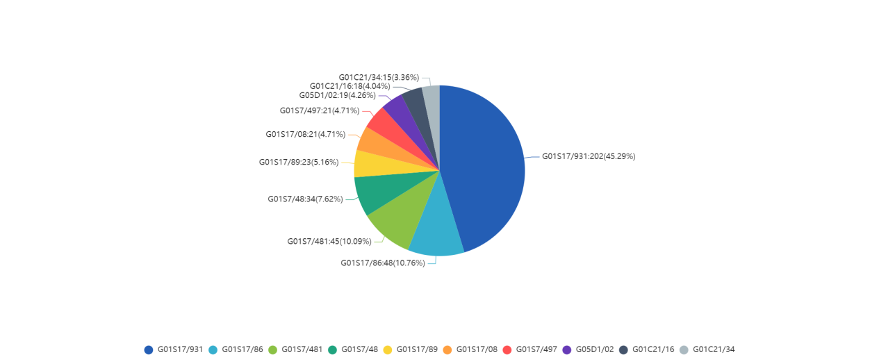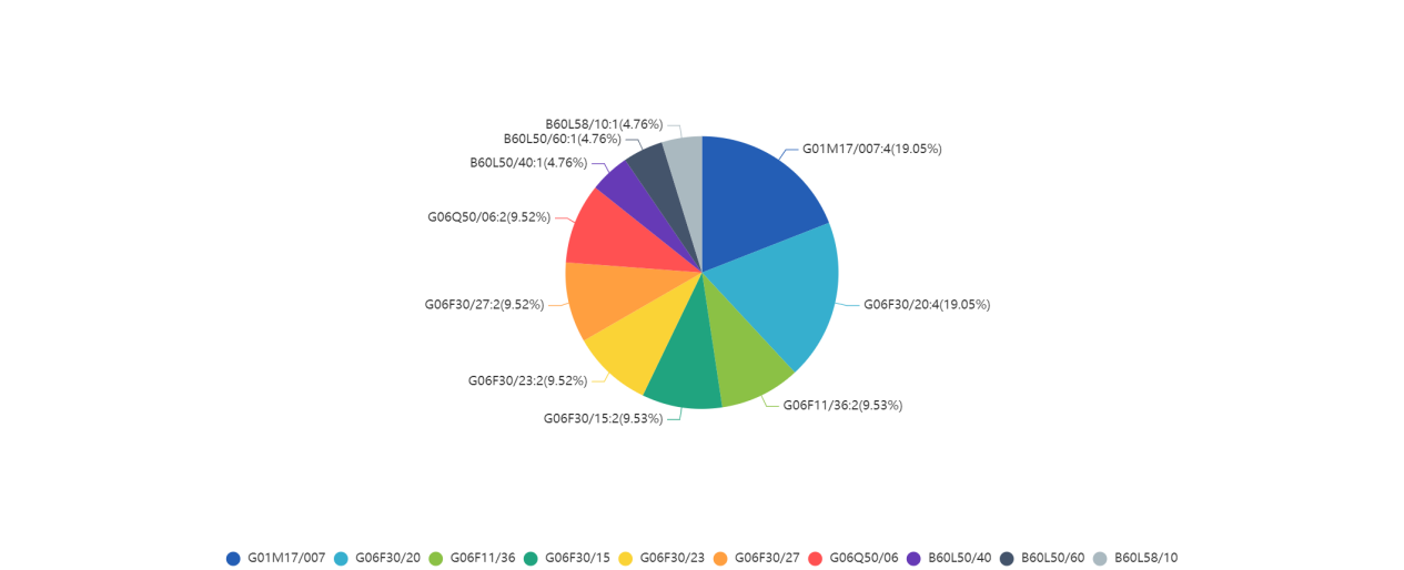 为确保专利分析结果的有效性,在检索过程中对检索的查全率和查准率进行了评估。针对数据的查全/准率,采用每个技术分支为一部分的验证方法,这样做是考虑能够对每个技术分支的检索结果有直观的评估,了解每一部分数据的有效性,从而避免了将各部分数据加和后再进行查全验证时,各部分数据间相互造成的影响。这对数据有效性的评估是不利的。同时,验证过程与检索去噪交替进行,因为在检索初期,查全检索不可避免地会引入噪声,所以为了确保较高查全率,查准率将受到影响,而在去噪时,由于去噪采用的主要是检索去噪的方式,因此在去噪的同时可能会使部分非噪声文献被去除。因此在去噪后保证查准率的同时,还需要进行查全率的验证,以时最终的数据的有效性更好。经查全查准验证,最终确定综合查全率为82%、综合查准率为95%。