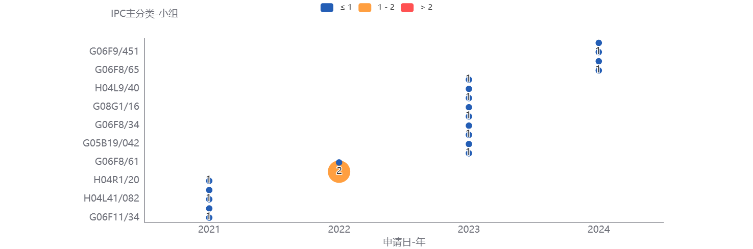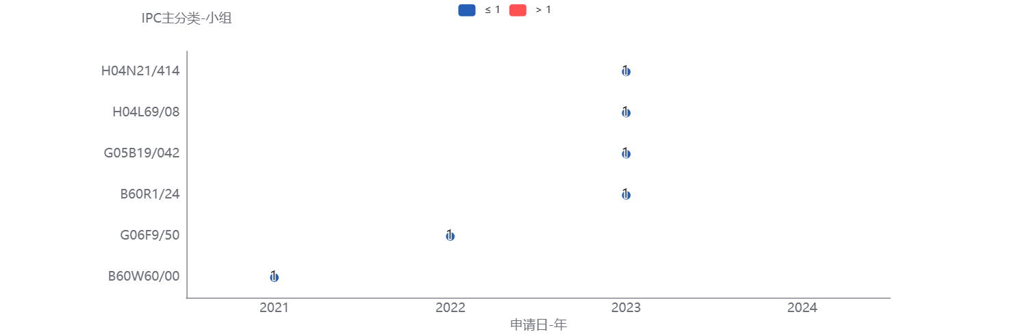 1、激光雷达领域:中部集群在G01S13/931(用于绘地图或成像)技术领域存在明显缺失,专利申请量与其他集群相比较低。