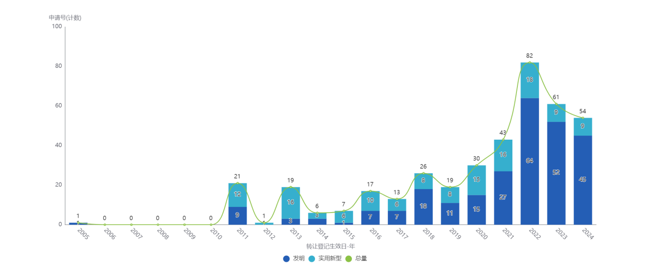 项:同一项发明可能在多个国家或地区提出专利申请,WPI数据库将这些相关的多件申请作为一条记录进行收录。在进行专利数量统计时,对于数据库中以一族(这里的“族”指的是同族专利中的“族”)数据的形式出现的一系列专利文献,计算为“1项”。
