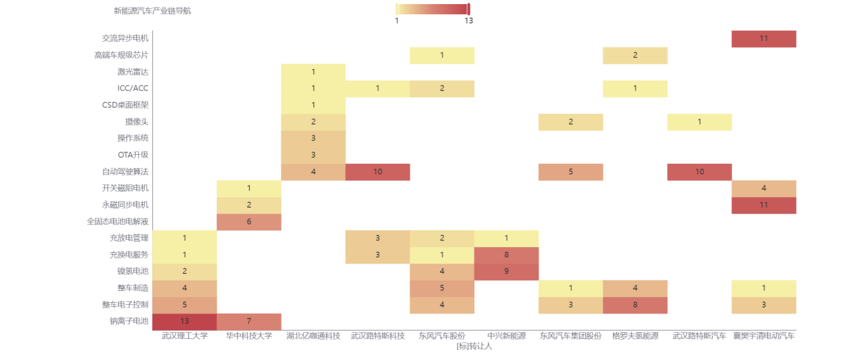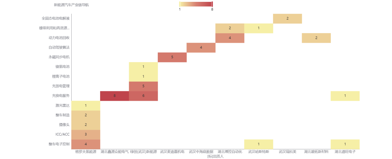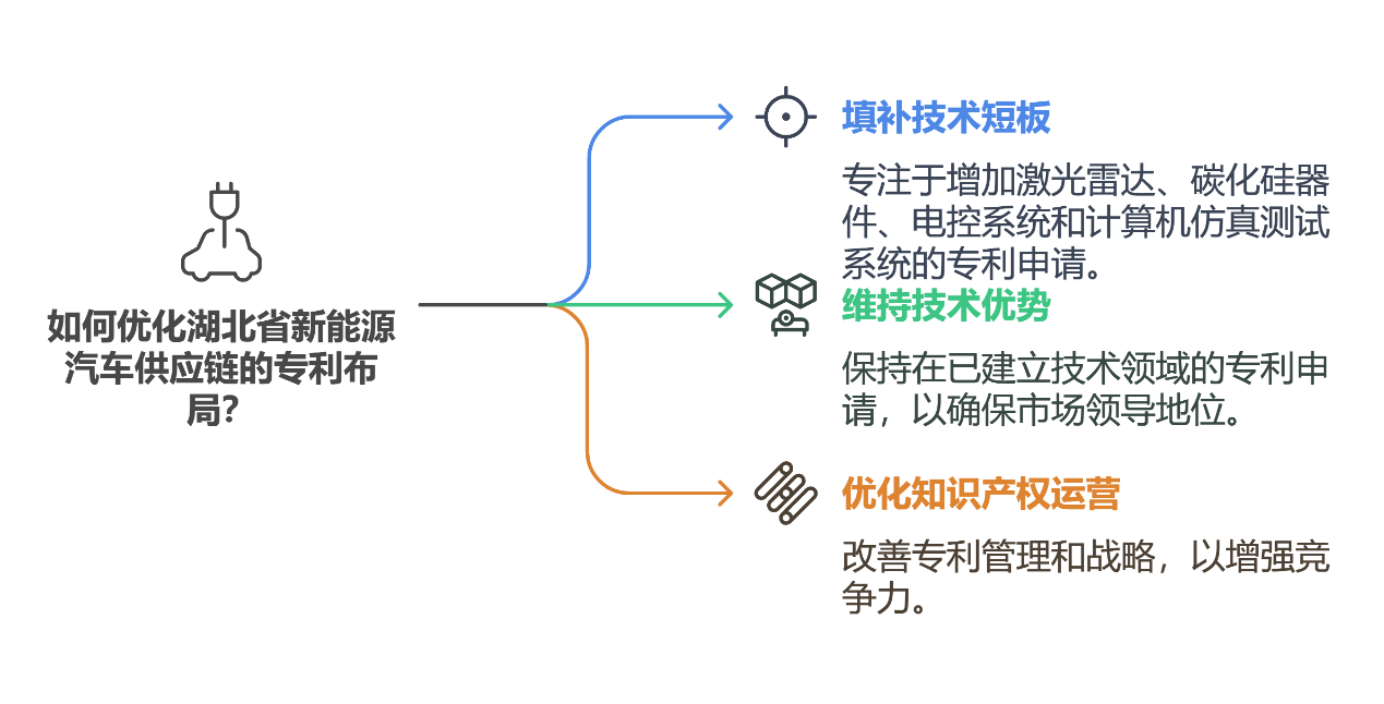 基于第五章分析结果,湖北省新能源汽车供应链在专利布局层面呈现显著技术短板,主要体现在激光雷达、碳化硅功率器件、电控操作系统及计算机仿真测试系统四大领域。具体表现为: