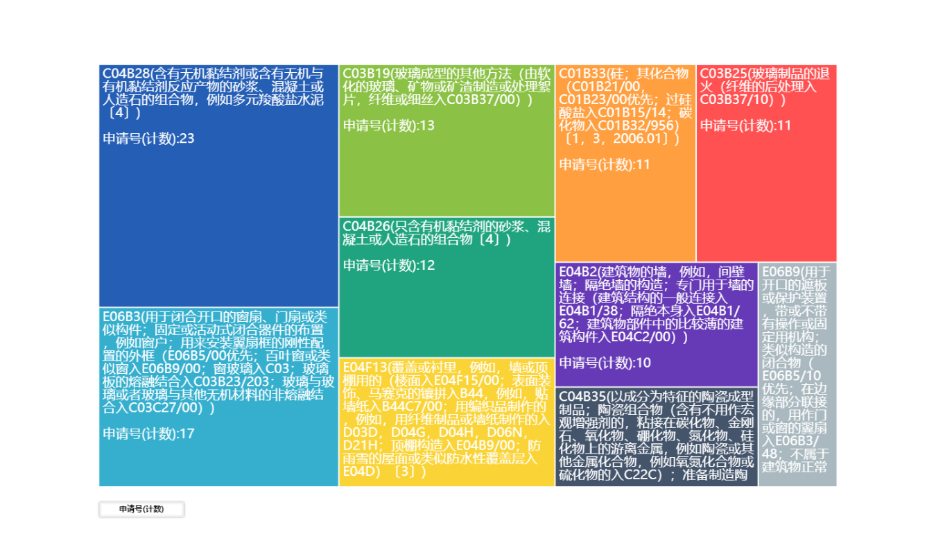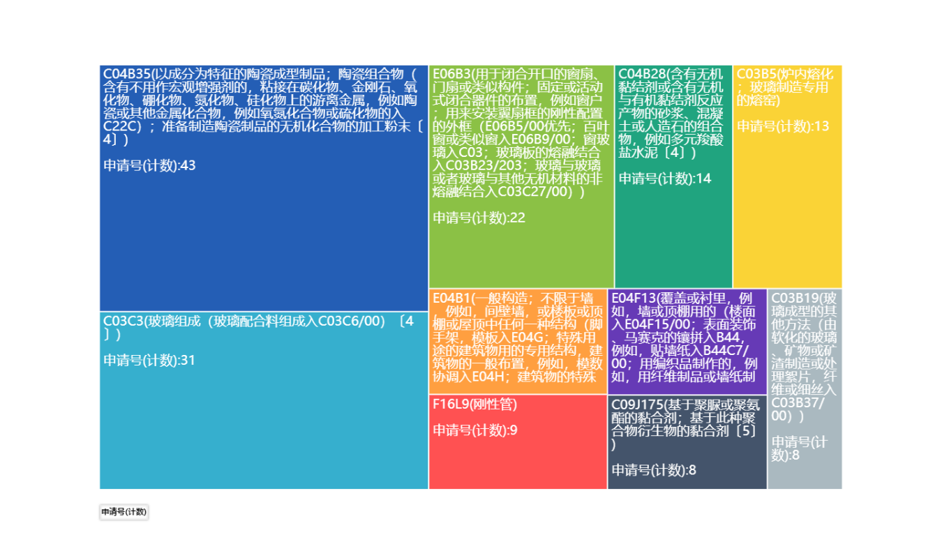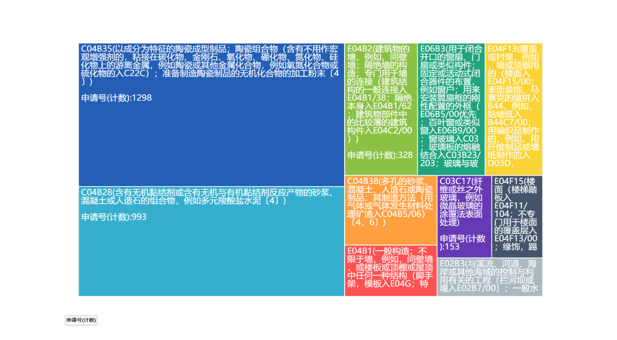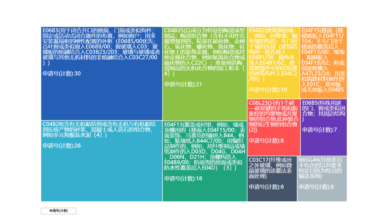 (1)对湖北省绿色建材的产业链与创新链及其发展现状、企业区域分布、技术需求等进行全面分析,对湖北省绿色建材产业进行技术分解,绘制技术分解表,在此基础上构建专利检索策略并进行数据的清洗和标引,建立起“湖北省绿色建材产业专利专题数据库”。