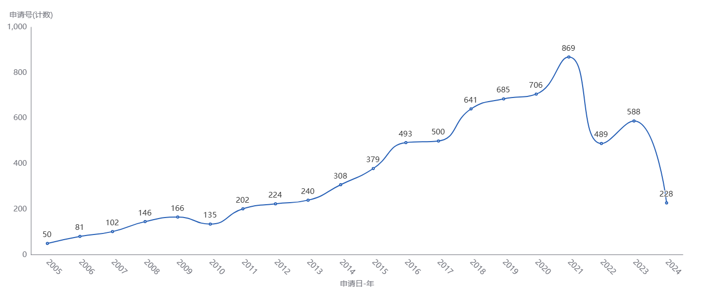 (1)同族专利。同一项发明在多个国家申请专利而产生的一组内容相同或基本相同的专利文献出版物,称为一个专利族或同族专利。从技术角度看,属于同一专利族的多件专利申请可视为同一项技术。在本报告中,针对技术和专利技术原创国进行分析时,对同族专利进行了合并统计;针对专利在国家或地区的公开情况进行分析时,各件专利进行了单独统计。