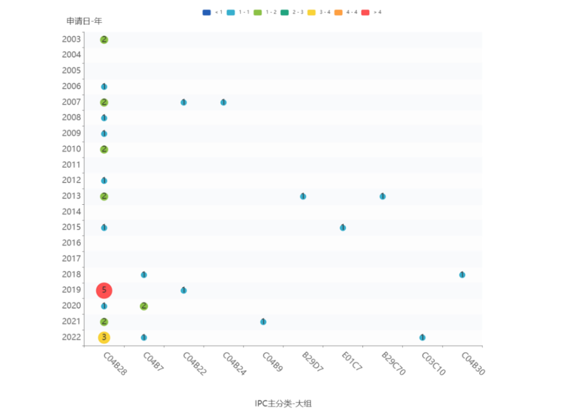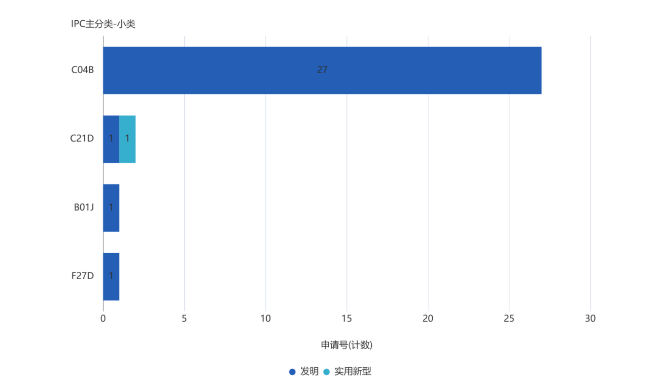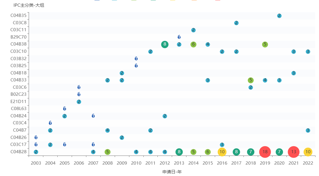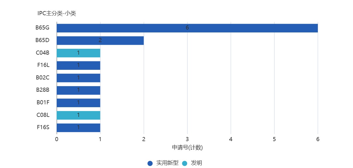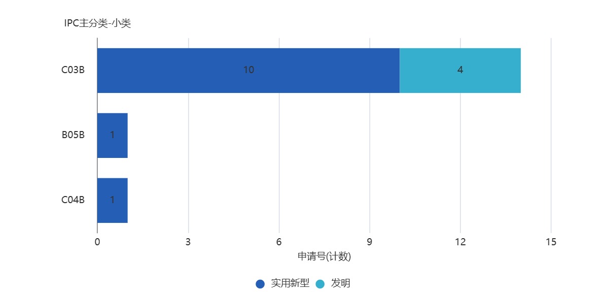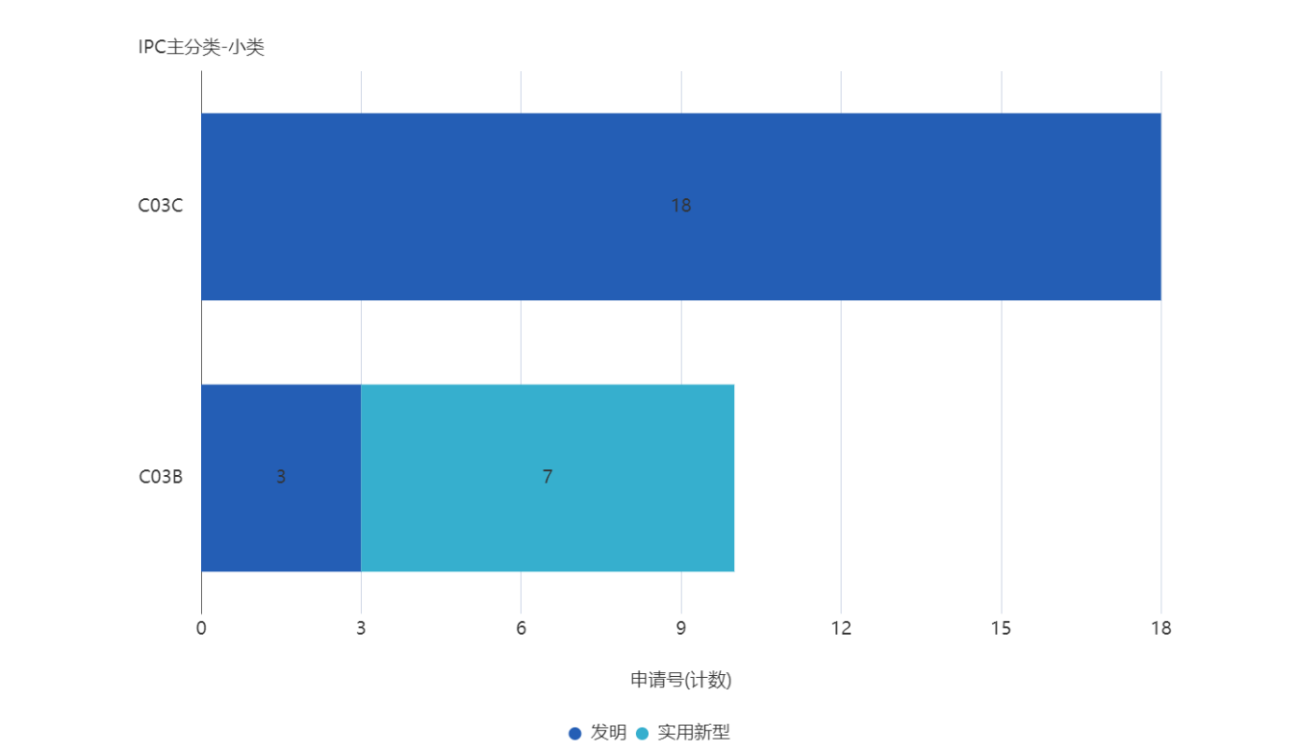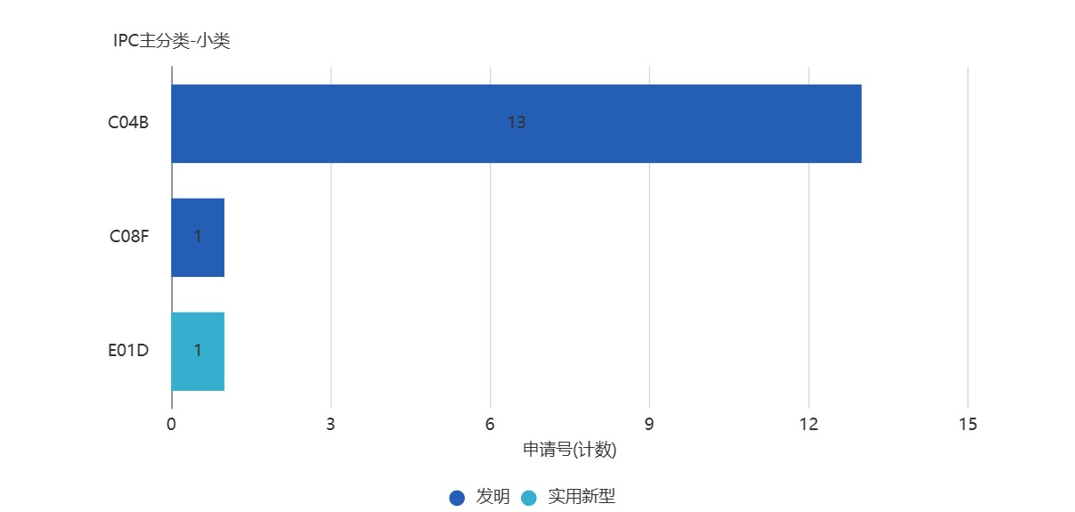 补充检索阶段:在前期全面检索的基础上,统计本领域主要申请人,并利用IPC分类号统计工具确定与材料相关的分类号范围,从主要申请人及分类号两个维度对前期获取的检索成果进行补充。