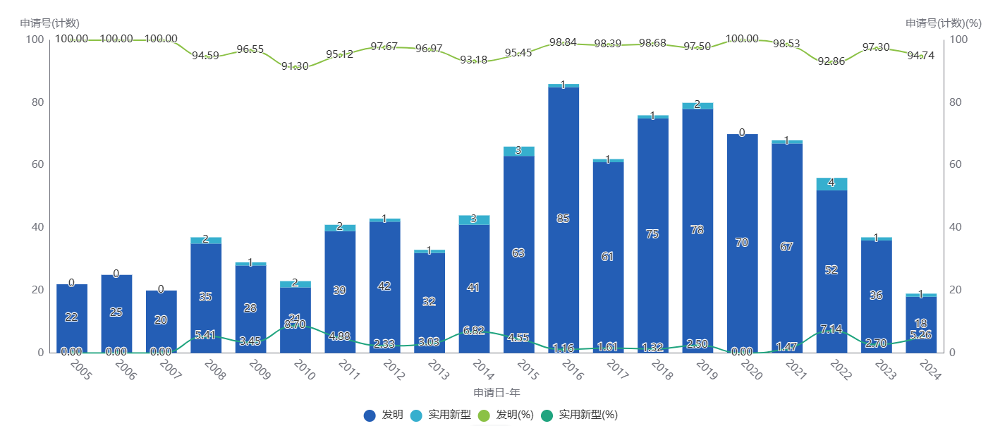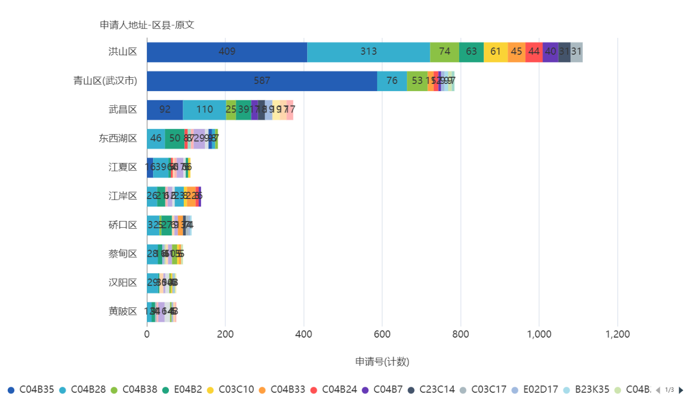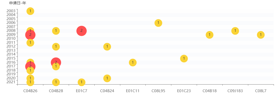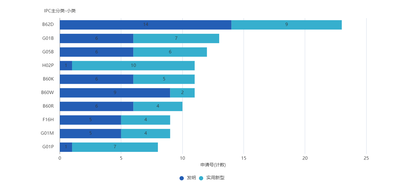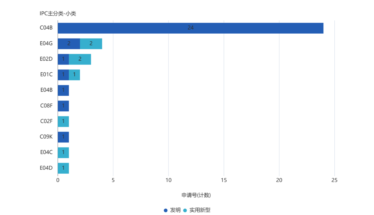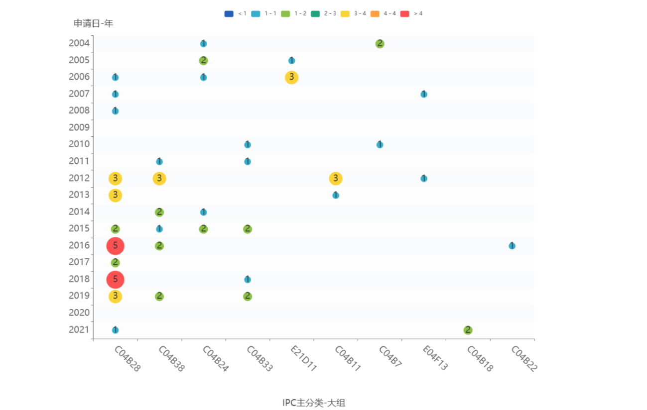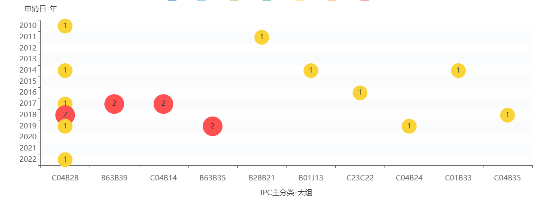 补充检索阶段:在前期全面检索的基础上,统计本领域主要申请人,并利用IPC分类号统计工具确定与材料相关的分类号范围,从主要申请人及分类号两个维度对前期获取的检索成果进行补充。