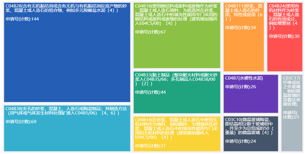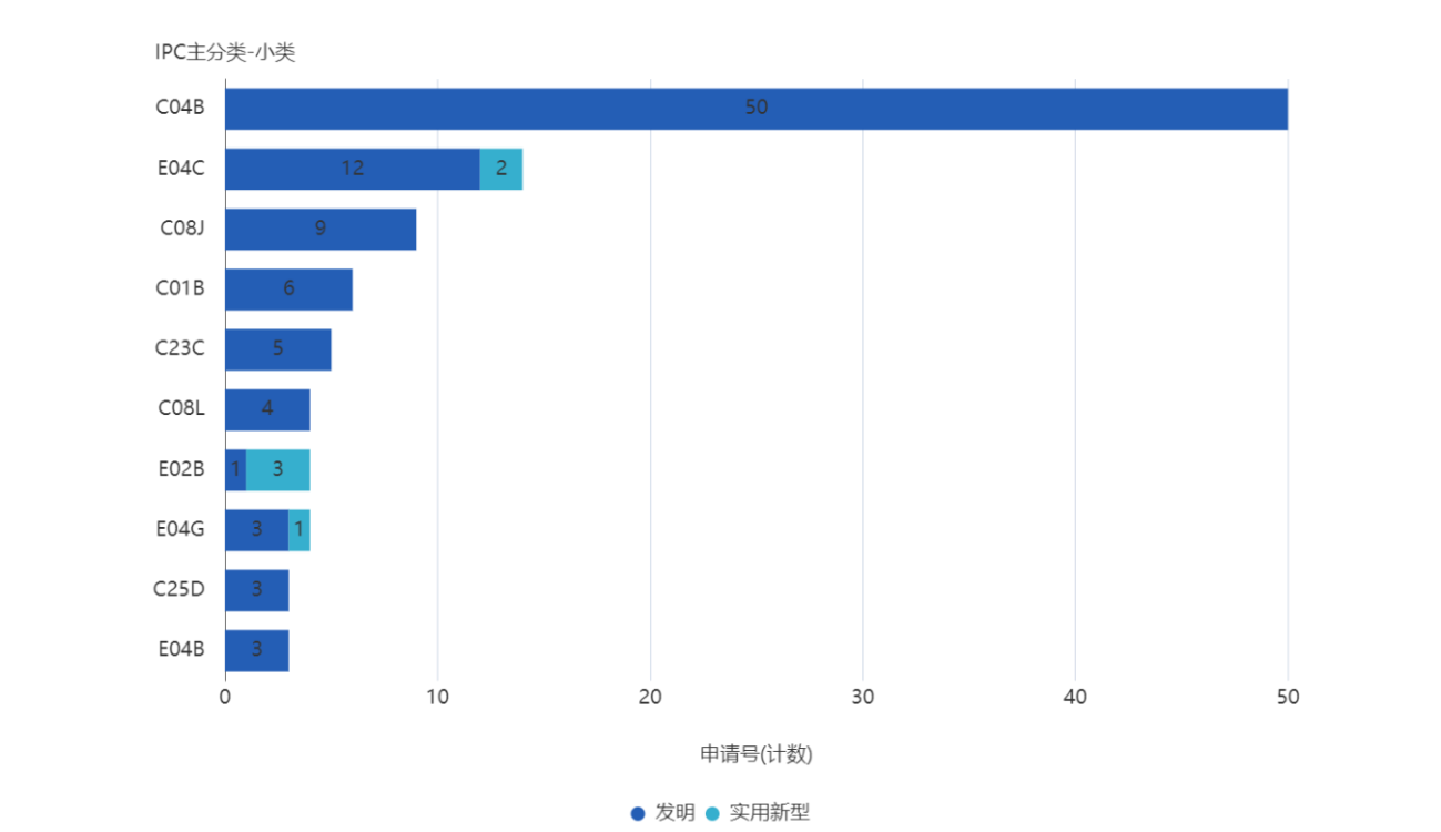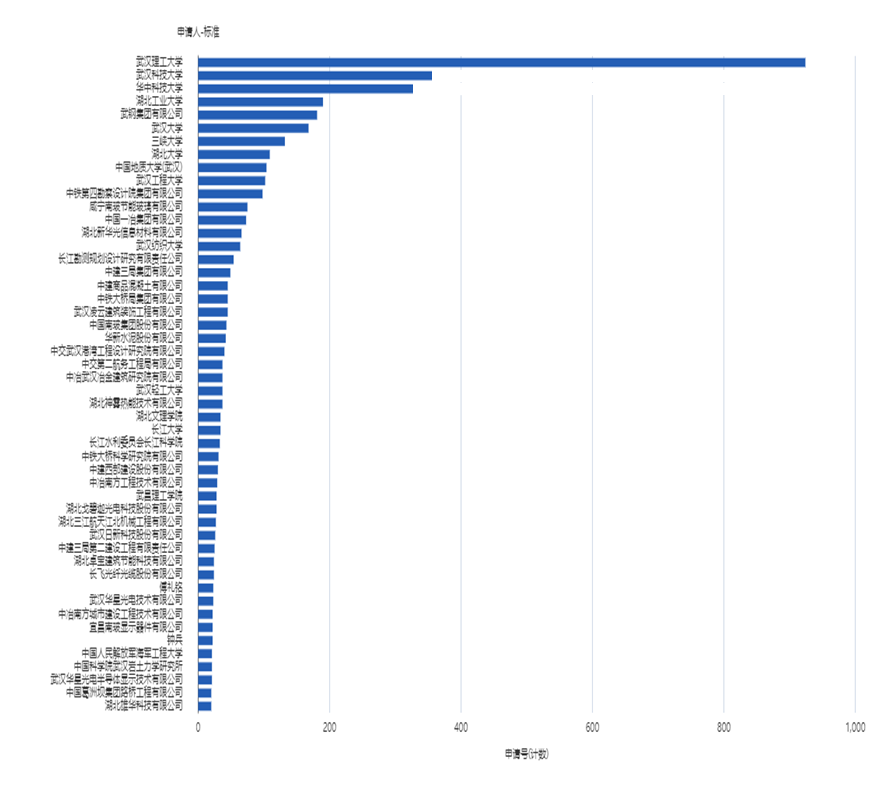 (3)基于“湖北省绿色建材产业专利专题数据库”,对湖北省主要研发主体,包括TOP10的高校与研发机构、TOP50的企业,以及IPC-TOP的技术热点进行专利大数据分析,以全面掌握绿色建材产业领域的技术供给信息,为服务专利技术的精准对接与转移转化提供准确的技术源信息。