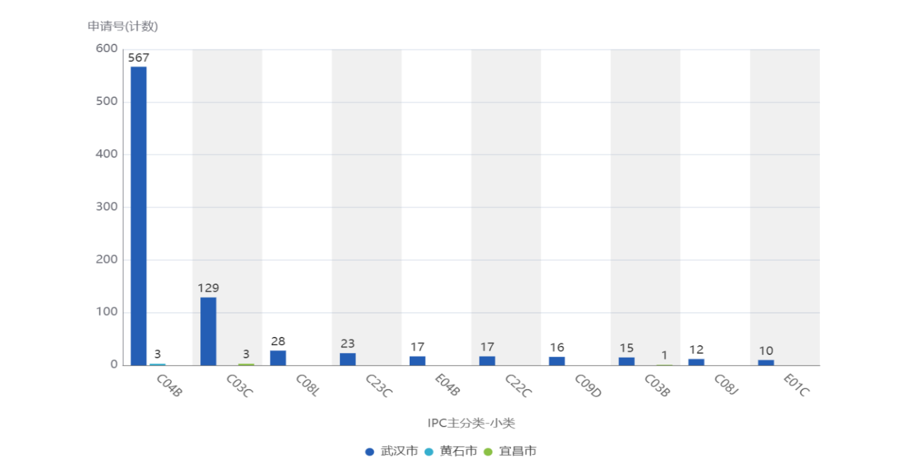 (2)基于“湖北省绿色建材产业专利专题数据库”,对湖北武汉、襄阳、宜昌、黄冈、孝感等典型城市的专利申请态势、专利技术构成、专利技术区域分布和专利申请人等进行专利大数据分析,以掌握和了解这些城市在绿色建材产业领域的创新与技术发展优势和需求,为推动专利技术的精准对接和转移转化提供科学依据。