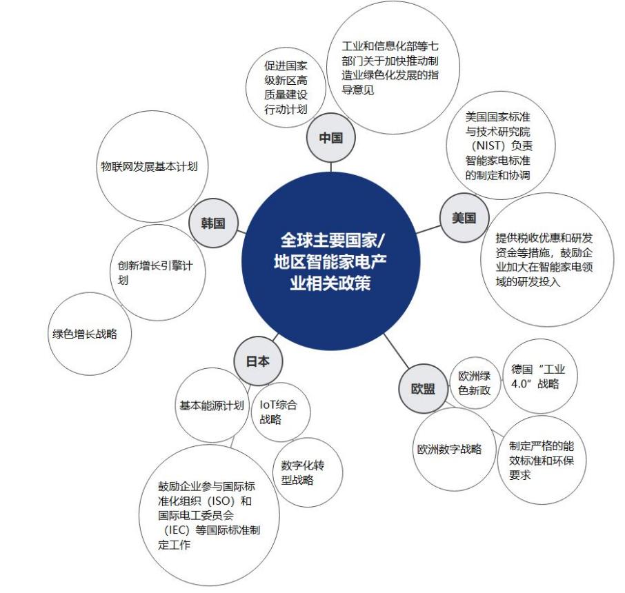 总之,各国政策均明确提出了对智能家电产业的支持和引导,为产业发展提供了良好的政策环境。一方面,鼓励技术创新和研发,推动智能家电产业在技术上不断进步。另一方面,还通过推动智能家居系统的发展、加强物联网技术的应用等方式,致力于培育智能家电市场,推动产业的快速增长。
