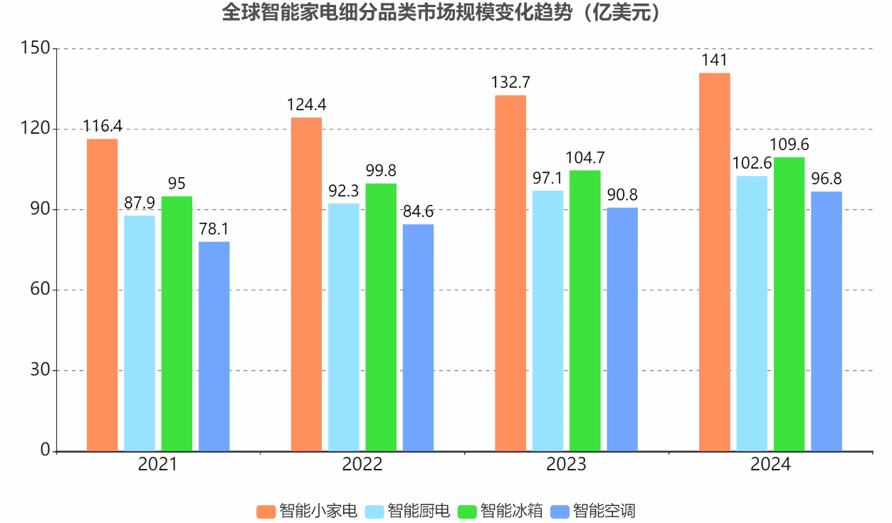 图1-12全球智能家电主要细分品类市场规模变化趋势
