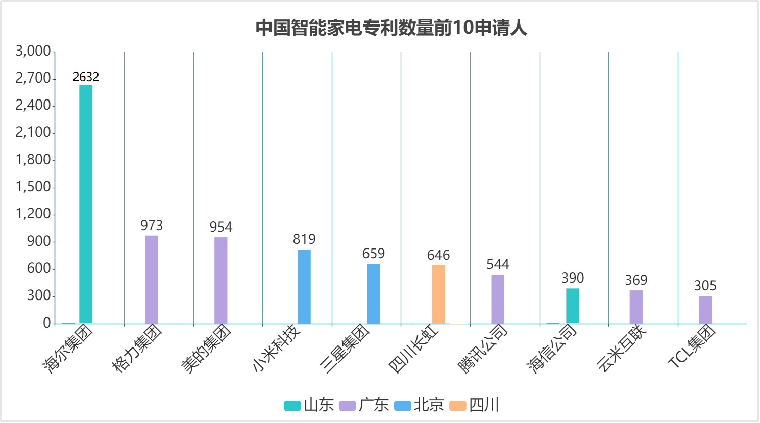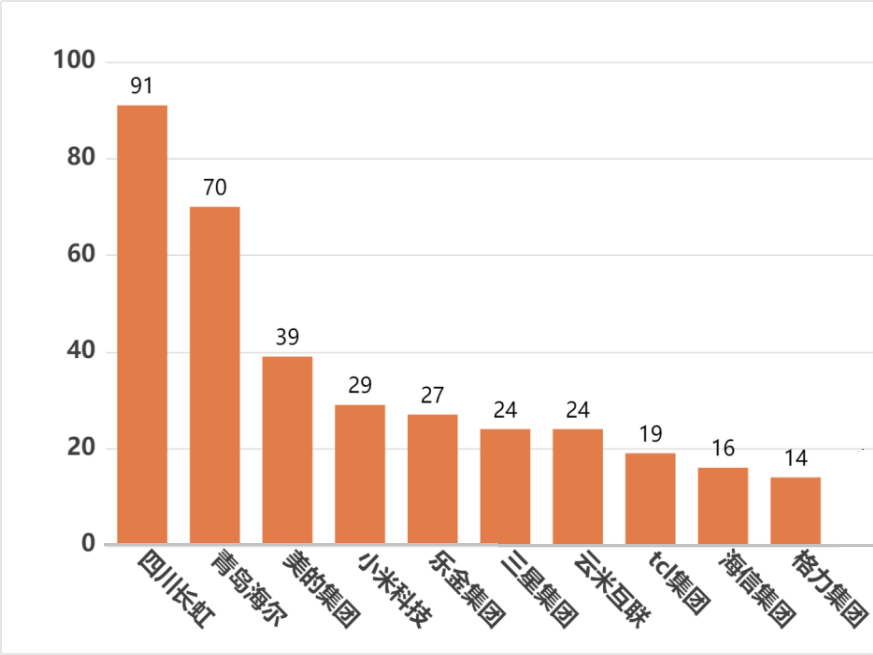 此外,从专利数量的分布来看,前几家公司的专利数量明显高于排名靠后的公司,进一步表明智能家电行业中头部企业的技术优势和市场地位。