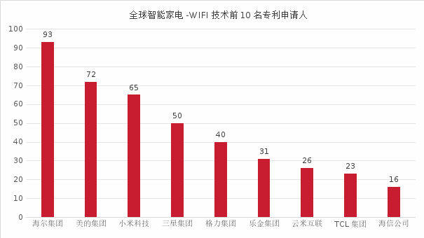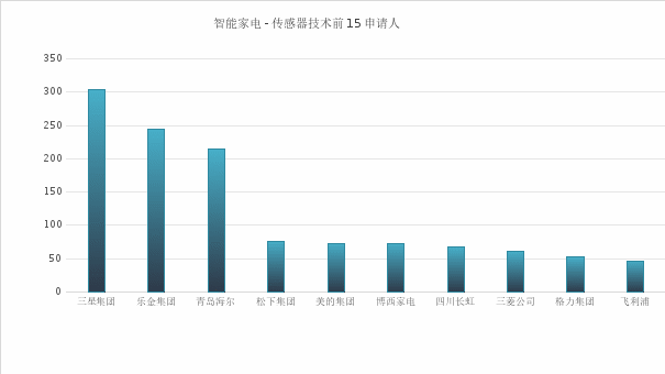 排名较后的是腾讯公司、松下集团和博西家电,其中,松下集团和博西家电是传统的家电公司,腾讯则为非传统的家电企业,非传统家电企业在智能家电领域拥有的专利数量表明它在智能家电技术细分市场或细分领域中具有一定的实力。