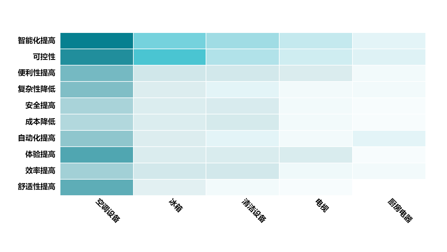 厨房电器方面,智能化和便利化是最主要的技术需求,以简化烹饪过程并提升效率;其次是提高能效,减少能源浪费。