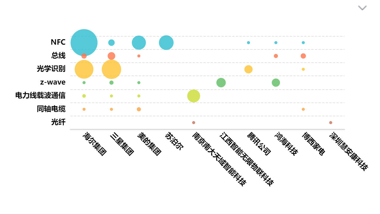 智能家电同轴电缆技术上,可重点跟踪美的集团和海尔集团的研发动向,其次还可关注三星集团和博西家电的研发动态。
