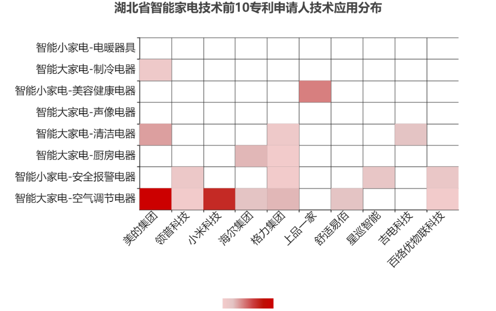 基于前述图2-33的分析,湖北本土有多家企业在智能小家电中起步晚、但发展迅速、市场广阔、研究热度比较高的智能门锁、智能烟雾报警器、智能声光报警器、美容健康电器等新兴领域有专利技术积累,如领普科技、星巡智能和百络优物联科技3家企业的专利与安全报警电器相关,上品一家的专利均与美容健康家电相关。因此,可对智能小家电中起步晚、但发展迅速、市场广阔、研究热度比较高的智能门锁、智能烟雾报警器、智能声光报警器、美容健康电器等新兴领域进行深入市场调研,明确用户需求和痛点,推动产品创新和技术发展,使其成为本土个性化和具有市场竞争力的智能家电产品。