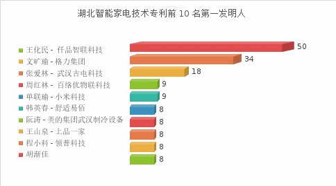 对湖北省智能家电空白技术分支对应的全球范围内所有专利的第一发明人进行汇总分析。