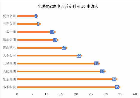 图3-6 全球智能家电涉诉专利前10申请人