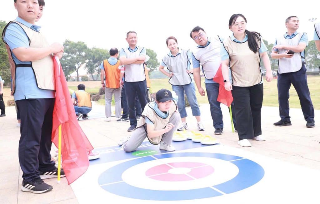 陆地冰壶运动是一个集智慧、技巧、趣味、竞技为一体的项目,需要队员们不断地应变计算并通力配合实践。在体育教练的指引下,干部职工随机分为八队,迅速进入比赛状态。