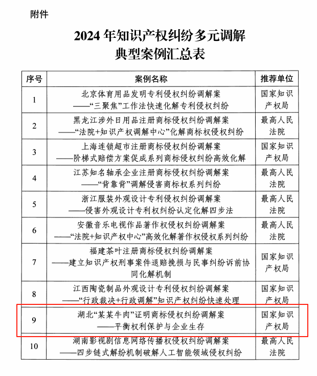 湖北案例入选2024年知识产权纠纷多元调解典型案例