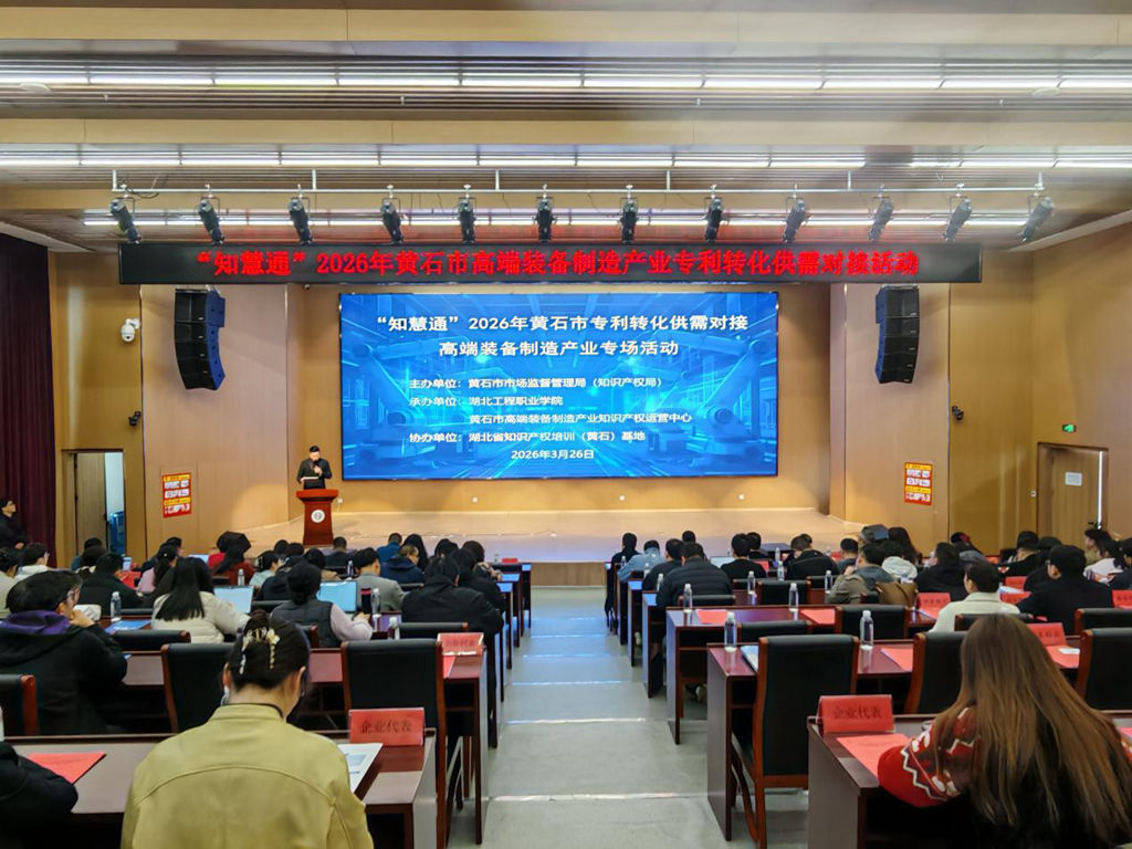 为推动专利转化运用,助力高端装备制造产业高质量发展,3月26日,“知慧通”2026年黄石市高端装备制造产业专利转化供需对接专场活动在湖北工程职业学院成功举行。黄石市市场监督管理局党组成员、副局长王萍,湖北工程职业学院党委副书记、副院长禹爱民出席活动并讲话。