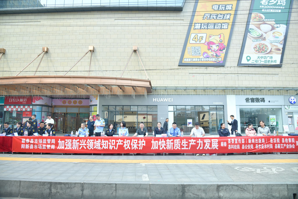 2026年4月20日,黄冈市蕲春县以“加强新兴领域知识产权保护 加快新质生产力发展”为主题,成功举办知识产权宣传周集中宣传活动。本次活动由蕲春县市场监管局(知识产权局)牵头,联合县委宣传部、县公安局、县法院、县检察院、县科经局、县农业农村局、县蕲艾产业协会等多部门协同举办,旨在深入贯彻落实国家、省、市关于知识产权工作的决策部署,全面提升社会创新保护意识,为县域创新驱动发展蓄势赋能。
